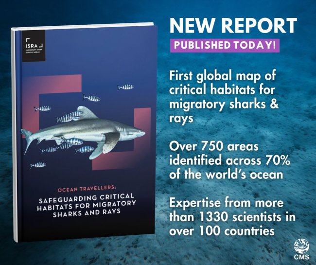 Un nouveau rapport mondial publié par le Groupe d'experts des requins de l'UICN, avec le soutien de la Convention sur la conservation des espèces migratrices appartenant à la faune sauvage (CMS), identifie plus de 750 zones importantes pour les requins et les raies (ISRA) couvrant 70 % des océans du globe. S'appuyant sur les contributions de 1 330 experts dans plus de 100 pays, le rapport Ocean Travellers fournit la première carte mondiale coordonnée des habitats critiques pour les requins et les raies migrateurs, y compris les sites de reproduction, les zones d'alimentation, les couloirs de migration et les points chauds d'agrégation.