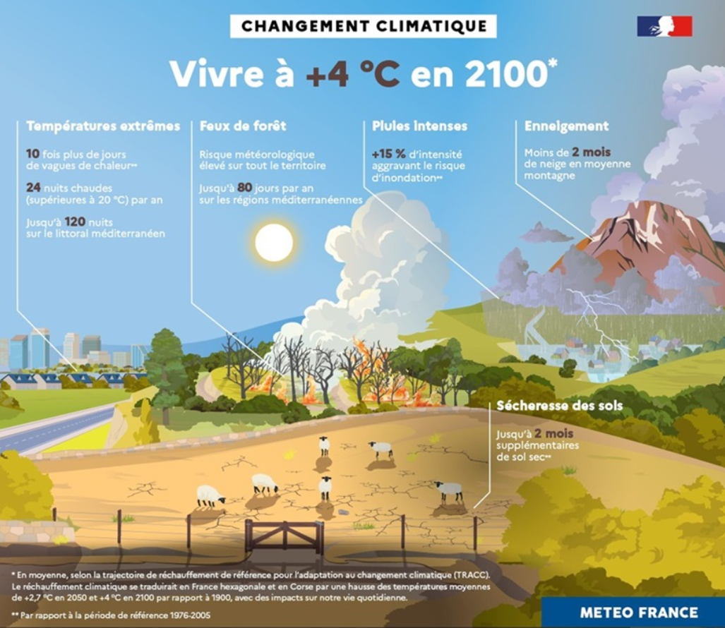 La France définit, dans le code de l’environnement tel que modifié par un décret du 23 janvier 2026 et complété par un arrêté ministériel du même jour, la trajectoire de réchauffement de référence pour l'adaptation au changement climatique, outre-mer compris.