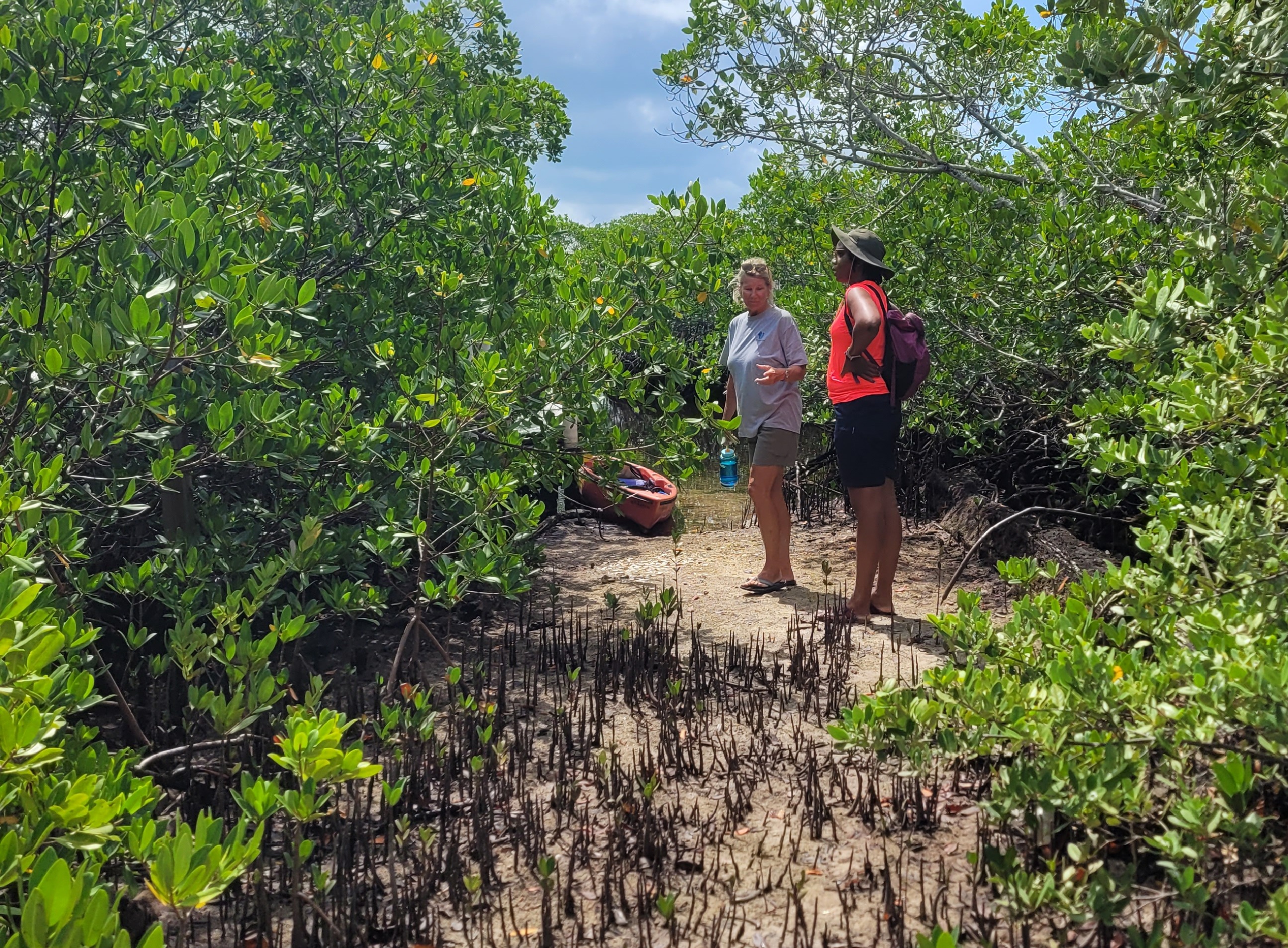 Cet échange a été réalisé avec le Perry Institute for Marine Science, membre de la Bahamas Mangrove Alliance, un collectif d’organisations (Perry Institute for Marine Science, Bonefish & Tarpon Trust et Bahamas National Trust) engagé dans la restauration des mangroves de deux îles des Bahamas après les dégâts causés par l’ouragan Dorian en 2019, qui avait détruit près de 50 % des mangroves d’Abaco et de Grand Bahama.