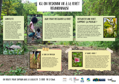 Ce projet cherche à impliquer davantage les enfants et le grand public afin de les sensibiliser et de leur donner la capacité d'agir concrètement pour restaurer les écosystèmes réunionnais.